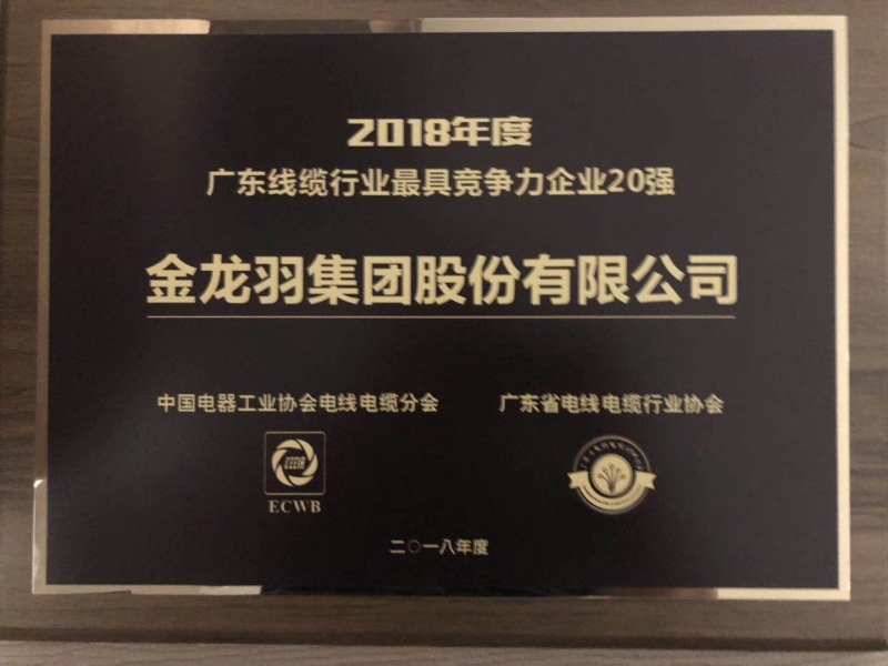 广东线缆行业最具竞争力企业20强牌匾